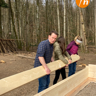 Die Schüler*innen der Projektstufe packten kräftig mit an. Mit großer Motivation und Spaß bei der Sache wurden Balken geschleppt und aufeinander gefügt, gesägt, gebohrt, gehämmert und genagelt.