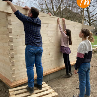 Die Kinder und Jugendlichen der Montessori-Schule Niederseeon freuen sich über eine großzügige Spende von Rubner Haus: Ein Gerätehaus in Blockbauweise aus umweltfreundlichem, nachhaltigen Massivholz.