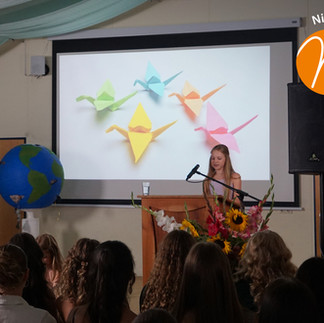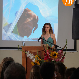 Der Tag begann aufregend. Ein enormes Unwetter in der Nacht davor hatte für eine Menge Chaos in Niederseeon gesorgt und auch vorm festlich dekorierten Bewegungsraum im Oberstufengebäude befand sich am Morgen Wasser. Die Schulgemeinschaft half zusammen, wischte den Boden trocken, brachte die Dekoration wieder an und pünktlich zum Beginn der Präsentationen war alles wieder in Ordnung. Die Sonne schien und die Schülerinnen und Schüler konnten in festlichem Rahmen präsentieren.